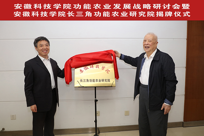 赵其国和蒋德勤共同为安徽科技学院长三角功能农业研究院揭牌。赵其国欣然接受蒋德勤为其颁发的“安徽科技学院长三角功能农业研究院名誉院长聘书”,为“安徽科技学院长三角功能农业研究院”题写院名,为安徽科技学院捐赠《寻找沃土》《赵其国文集-土壤科学卷》《赵其国文集-农业发展卷》等著作,为我校70年校庆题词:薪火相传七十载,强农兴农再出发。