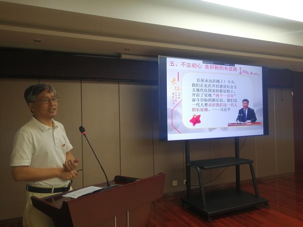 随后,郭文深博士从红军长征的背景、红军长征的艰苦历程、红军长征的胜利、长征精神、不忘初心走好新的长征路五个方面为企业全体员工讲了一堂“三军过后尽开颜:长征伟大的创举”党课;李凤舞围绕延安精神的含义、延安精神的价值、中央在延安13年、习近平总书记的插队故事等内容为企业员工讲了一堂“艰苦奋斗再出发:让延安精神在新时代不断发扬光大”党课。