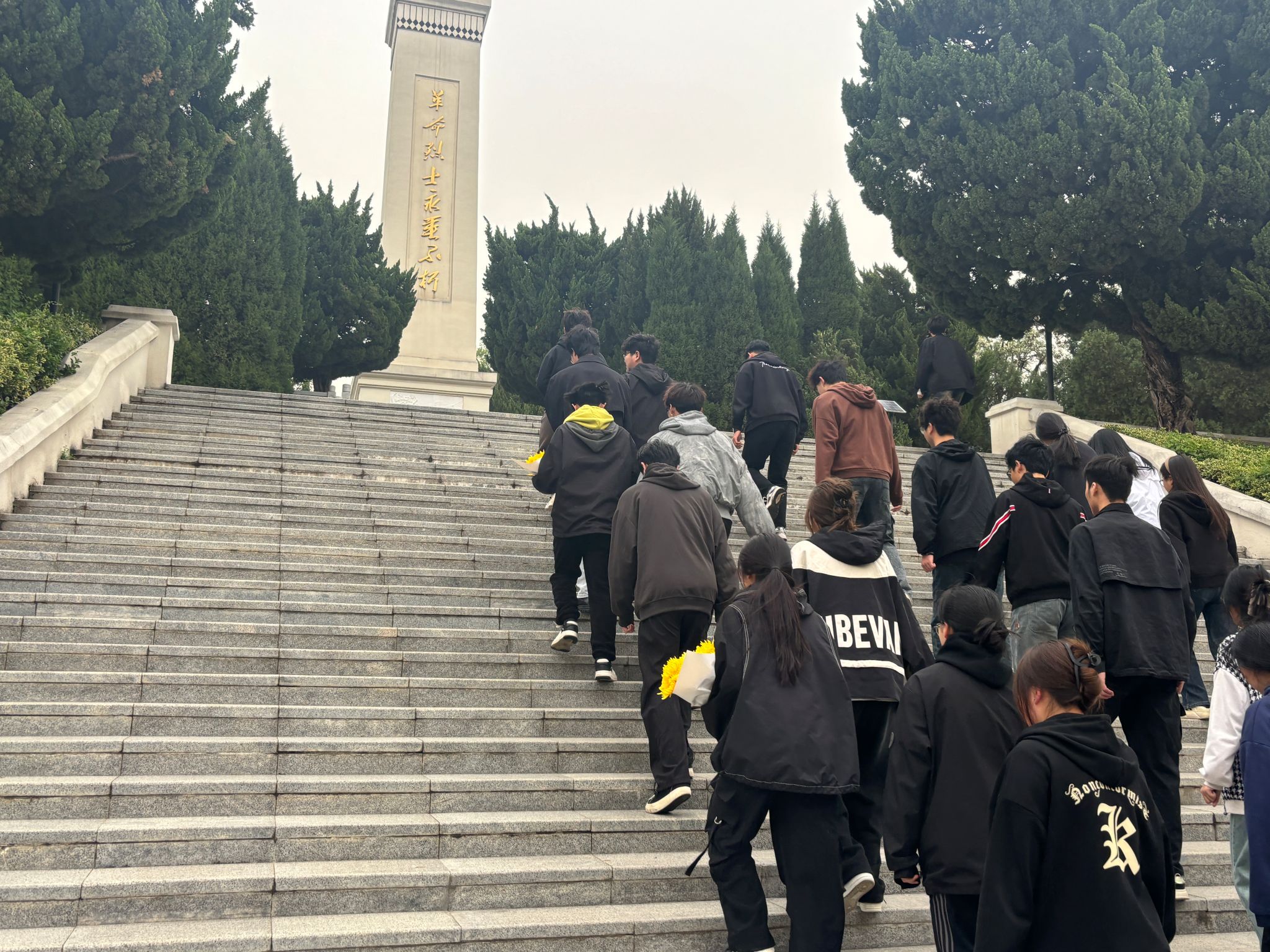 英雄纪念碑下,同学们庄严肃穆,通过集体默哀、敬献鲜花等方式深切缅怀革命先烈的丰功伟绩,表达崇敬追思之情。活动以“传承红色精神,践行强农使命”为主题,引导青年学子从革命先烈精神中汲取奋进力量,厚植知农爱农情怀。