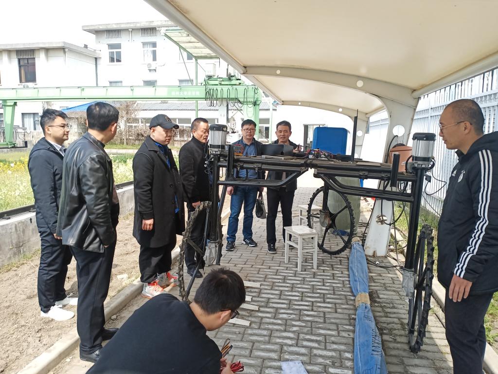 随后杨泽峰带领考察团参观了扬州大学江苏省作物遗传生理国家重点实验室培育建设点、智慧农业研究院、实习基地等。孙成明为大家详细介绍了智慧农业专业的实验室建设情况,展示并介绍了实验室中计算机软硬件配备、无人机、农业智能装备等。考察团还实地考察了扬州大学智慧农业实践基地,特别是智慧表型平台的建设和运营情况。扬州大学智慧表型平台于2022年投入使用,集成了高光谱、多光谱、三维数字化扫描仪等传感器,可获取高通量的表型数据。崔广荣充分肯定了扬州大学在智慧农业专业建设方面取得的成就,并希望与扬州大学农学院在人才培养、专业建设、实践基地建设、师资队伍、科学研究和思想党建等方面建立深入、长期、紧密的合作关系。杨泽峰表示非常愿意抓住智慧农业发展契机,与安徽科技学院农学院进行长期紧密合作,共同推进智慧农业专业建设,共同培养新农科人才,为我国农业现代建设化贡献力量。