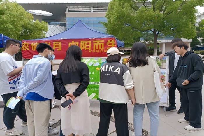 为进一步推广普及心理健康知识,营造关注心理健康、懂得心理健康、重视心理健康的浓厚氛围,更好的激发大学生心理健康自我保健意识。5月24日下午,农学院大学生心理委员联合会在西区小广场开展以“农情岁月,向阳而生”为主题的心理游园会活动。