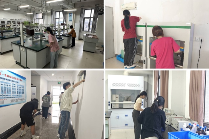 来自农学院23级的学生代表在实验室老师的指导下,分工合作,对实验室进行了彻底的清扫和整理。学生们分工明确,每个人都忙碌而有序,配合默契,表现出了极强的耐心与责任心,共同为打造一个洁净、整洁的学习环境而努力。