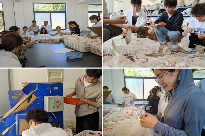 非毕业班党员和发展对象齐聚在西区玉米育种安徽省工程技术研究中心,在研究生的专业指导下投入到玉米品种的脱粒与分装工作中。同志们井然有序地操作着,每一步都遵循着严格的技术要求。他们全神贯注地聆听指导,彼此间相互协作、互相监督,实验室中弥漫着浓厚的学习与劳动氛围。通过一下午的努力同学们顺利完成玉米品种的脱粒和分装工作。