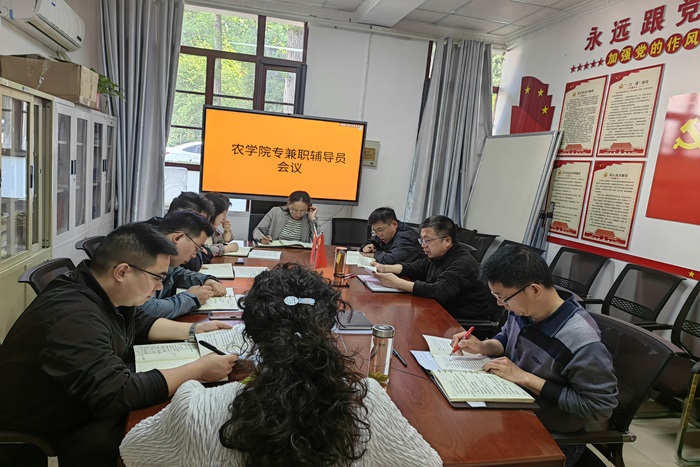 5月13日,农学院在东办公楼120召开全体专兼职辅导员工作会议,农学院党委书记何世潮、各专兼职辅导员参加会议,会议由党委副书记张轶辉主持。