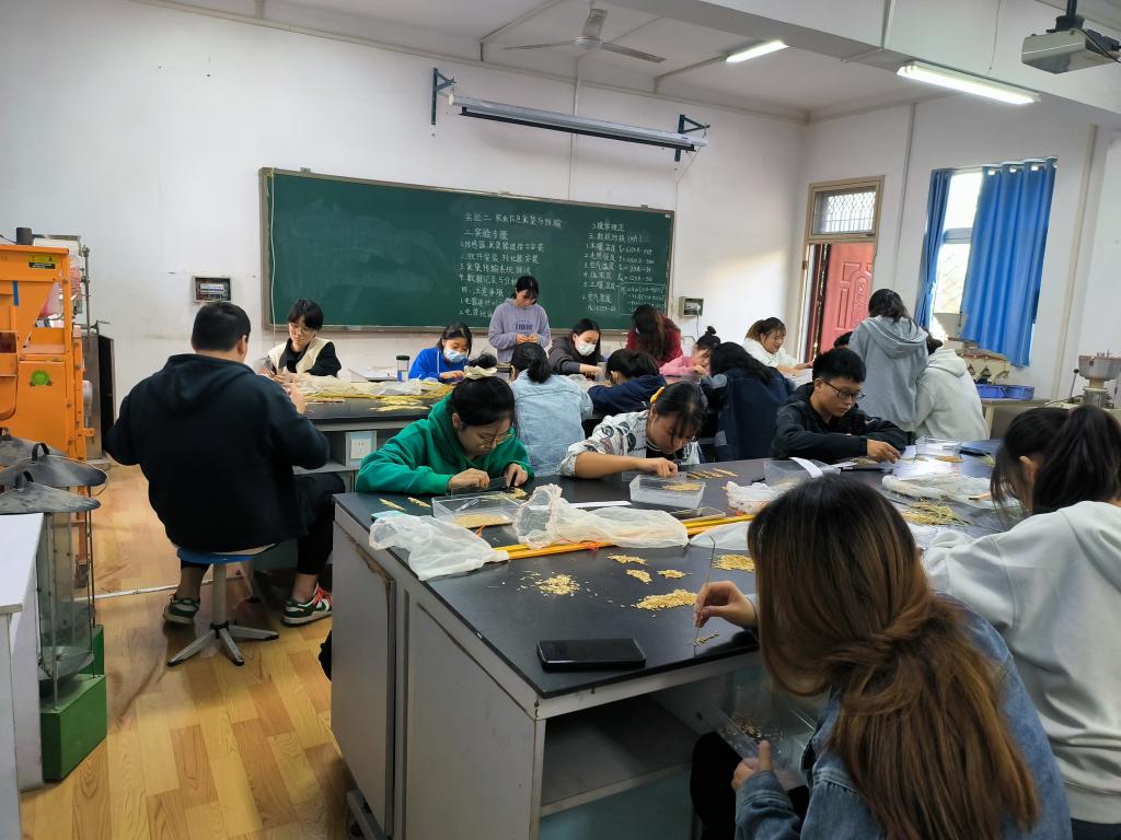 活动开始前,段素梅老师对水稻考种方法及标准要求进行详细的讲解与示范,同学们在段素梅老师的指导下进行水稻穗数和长度、脱粒、数粒等水稻考种测定。入党积极分子们按照老师的指导认真完成水稻考种各项步骤,顺利完成本次积极分子劳动实践活动。