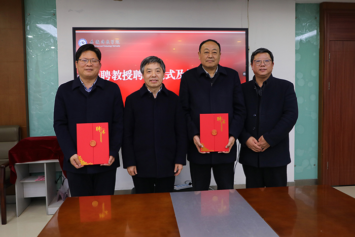 张其安、严从生在发言中感谢学校的信任与聘任,他们表示将充分利用学校提供的平台,认真履行特聘教授岗位职责,创造一流成果、培养一流人才,把科技成果转化为育人优势,为安徽科技学院学科建设和科研工作多作贡献。