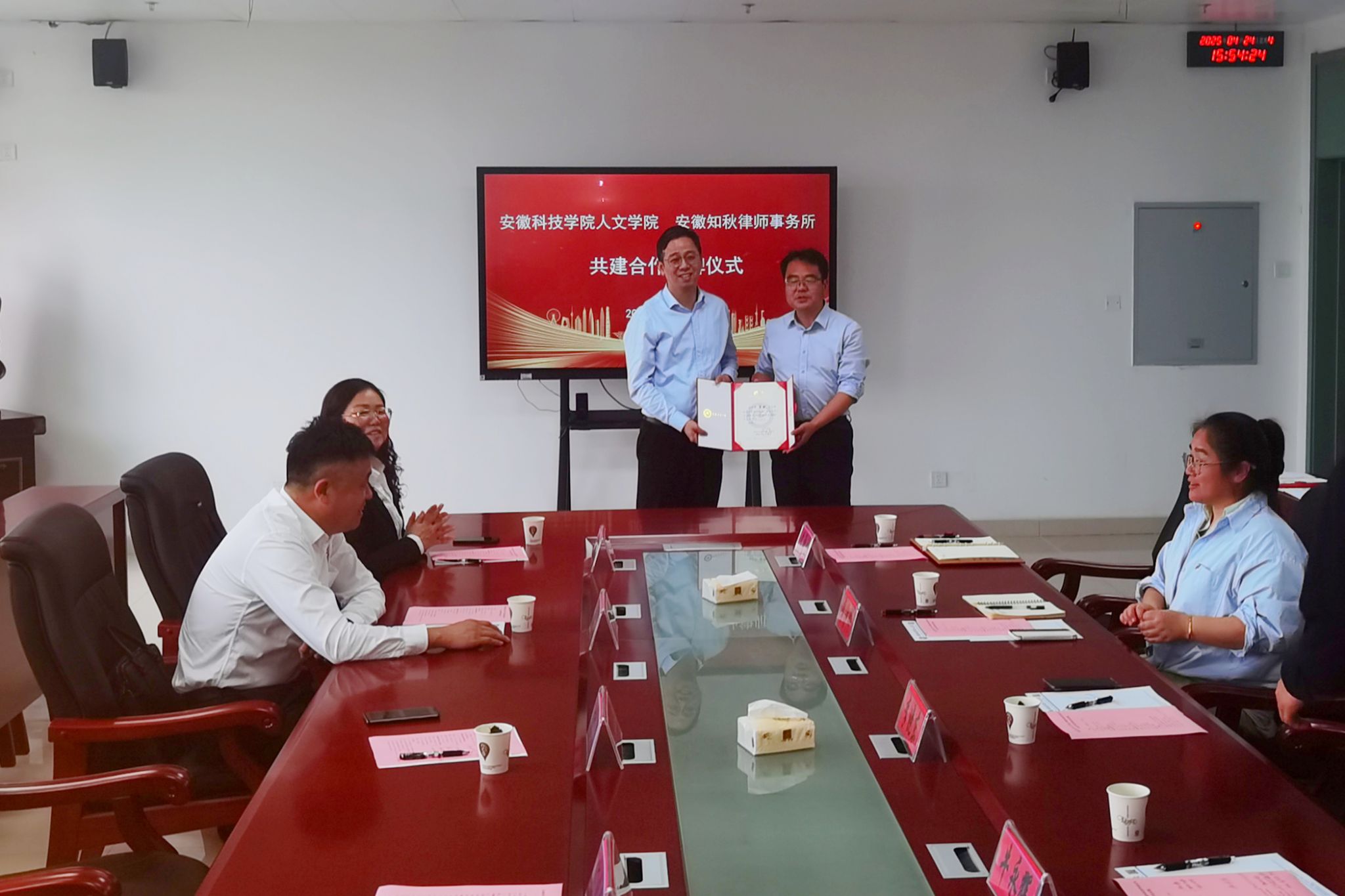 4月24日下午,人文学院与安徽知秋律师事务所在学院313会议室举行共建合作授牌仪式。安徽知秋律师事务所主任、首席合伙人宫鉴一行4人,人文学院党政领导班子成员和教师代表出席。仪式由人文学院副院长牛永辉主持。
