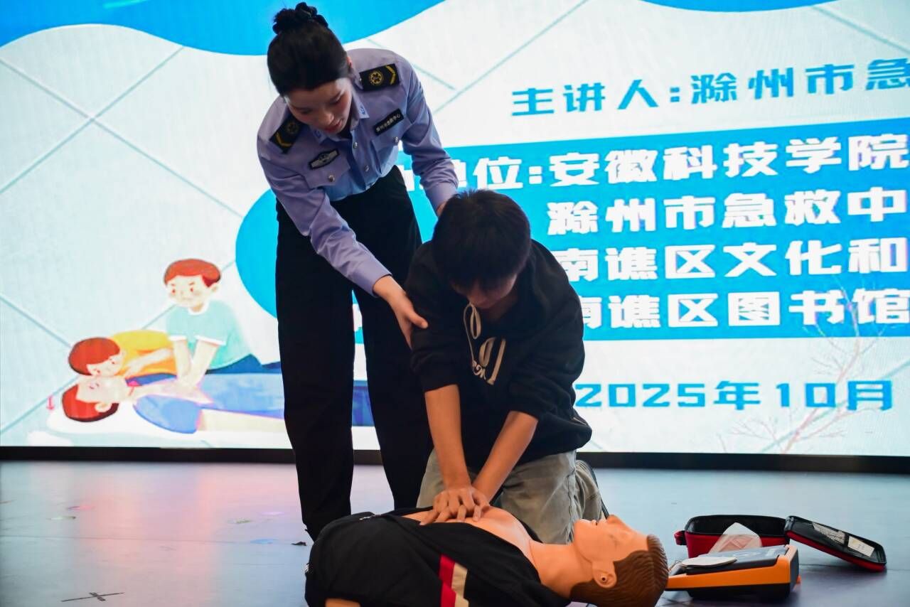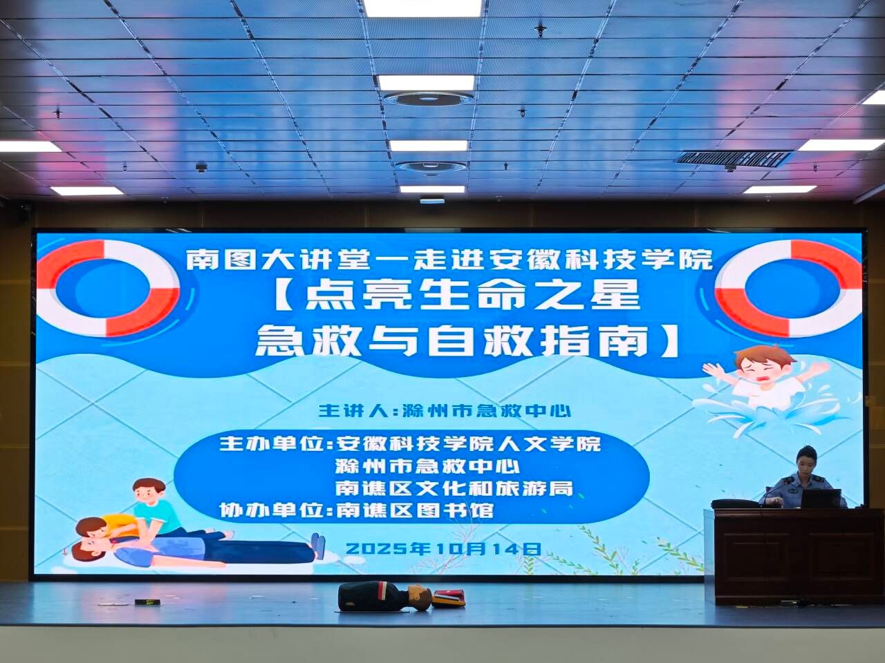 为普及应急救护知识,提升学生群体的自救互救能力,10月14日晚,人文学院联合滁州市急救中心、南谯区文化和旅游局,在图书馆二楼报告厅共同举办“点亮生命之星——急救与自救指南”安全教育专题讲座。专题讲座由学院辅导员刘佳主持,滁州市急救中心医生刘丽主讲。