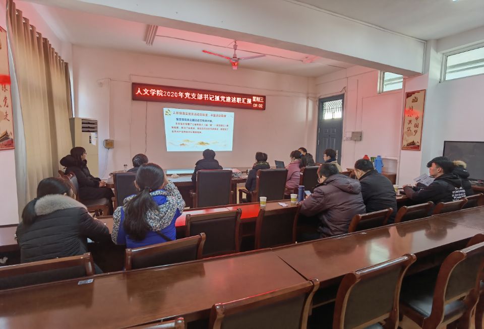 为深入学习贯彻习近平新时代中国特色社会主义思想,落实党的十九大和十九届四中、五中全会精神,坚决落实党风廉政建设各项工作要求,坚持党要管党、全面从严治党。根据《中共安徽科技学院委员会中国足彩网开展2020年度基层党组织书记抓党建述职评议考核工作的通知》文件要求,人文学院于1月13日上午在学院会议室召开2020年度基层党支部书记抓党建述职评议会。学院党总支委员、党支部委员、工会主席、民主党派和无党派教师代表以及学生党员代表参加。会议由党总支书记杜士凤主持。