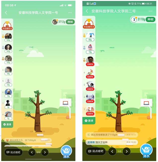 活动期间,人文学子们通过每天运动提高步数等方式,为同学林“浇水灌溉”,贡献自己的力量。同时,同学们还可以通过每日排行,了解其他同学的贡献量,相互鞭策,相互促进。看着屏幕里茁壮成长的小树苗,一棵名为“公益”的嫩芽也在同学们的心里悄然长大。