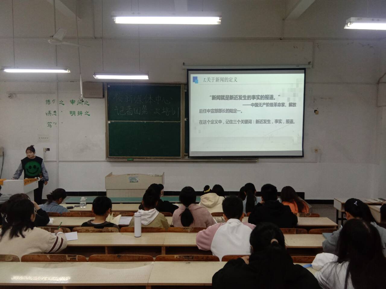 为增强学院宣传工作人员的新闻写作技巧,提升其新闻写作能力水平,11月24日,校新媒体中心于求知楼A楼101教室举办新闻写作培训会。校新媒体中心成员、人文学院学生会新媒体部门、人文学院各班级宣传委员参加。会议由校新媒体中心记者团总编辑、汉语言文学191班黄子怡主持。