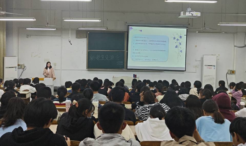 为促进新老生之间的交流,帮助新生解决新环境带来的迷茫和困惑,更好更快的融入大学生活,10月25日晚,人文学院于求知楼A102教室开展了新老生交流会,法学191班舒满、汉语言文学192班阚贞贞、陈许作为老生代表上台讲话,会议由学生会团支部部长张旻炜主持,21级全体新生参加。