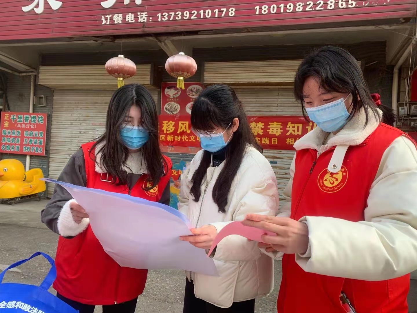 寒假伊始,王心语返家后便立即到当地团县委报道,并与各社区、各乡镇的团委副书记一同参加了工作启动会议。会上,在团委书记的带领下,王心语学习了《中国共产主义青年团章程》的主要内容,并认真听取了相关工作安排。在工作人员的带领下,王心语来到汊河镇临溪社区新时代文明实践站,召集该社区居民群众开展文明树新风活动,引导居民群众破除旧思想,倡导文明新理念,并在汊河镇黄牌社区开展了青少年自护常识知识宣讲活动。在各项主题活动如火如荼的展开的同时,疫情防控的紧弦一直威胁着大家。在全国疫情防控到点到户的大局势下,面对春节假期返乡人员日益增多的情况,王心语积极协助当地政府工作人员和医护人员,分别在高速公路出口处以及主要小区门口处进行疫情防控工作。上岗以来,王心语一直谨遵“十个一”的工作要求,积极参与社会调研、主动提出建议,参与党史团史学习教育宣讲、主题团日、志愿服务、关爱困境青少年等活动。