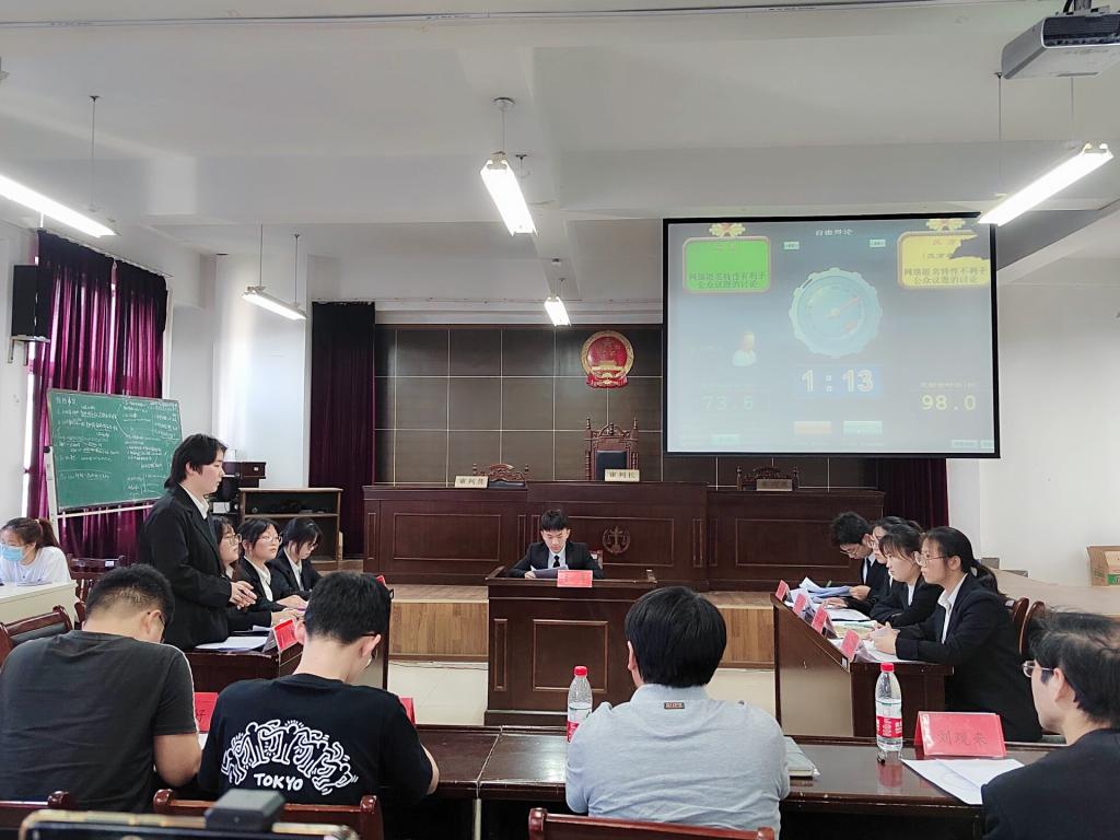 唇枪舌战,辩赛场硝烟;口若悬河,理是非曲直。为提升学生思辨能力和创造力,弘扬法治精神,培养我校法律人才,5月4日,人文学院举办的未来律师辩论大赛决赛于模拟法庭展开。本次辩论赛由学院老师刘观来、骆绪刚、张晓云,学生陈鹏程、卢书好、舒满担任评委,比赛由邱子轩主持。