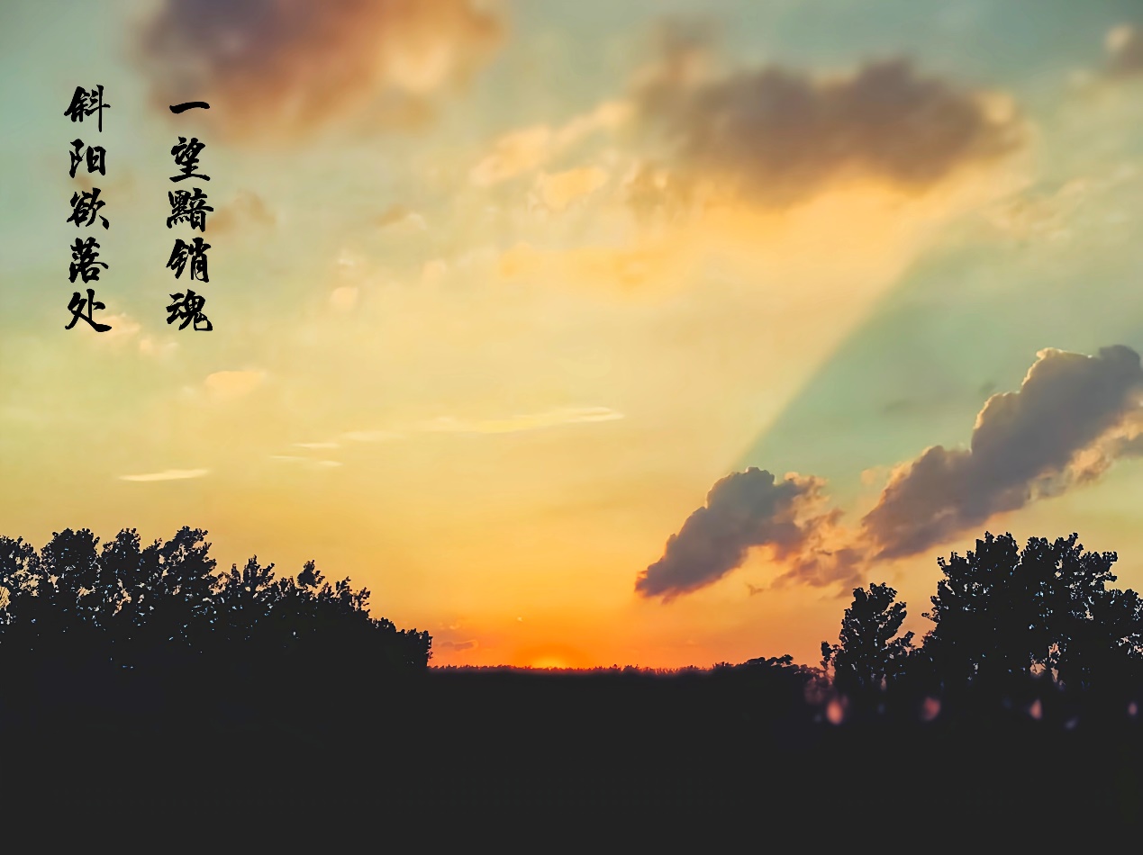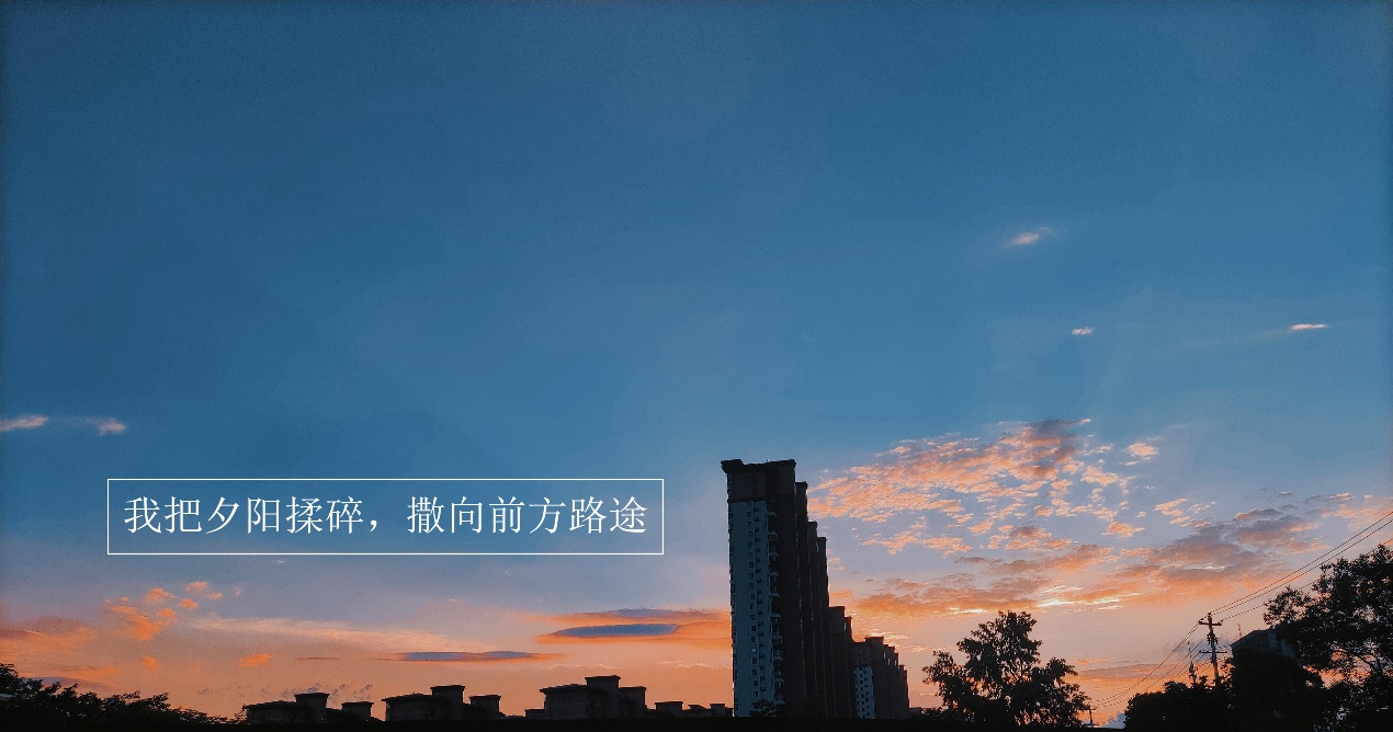作品介绍:日落去过很多地方看过很多场日落温暖的、绚丽的、悲凉的、落寞的而最难忘是家乡的日落落日弥漫的橘天,温柔又浪漫橘红色的余晖里像炙热的阳跳进碧蓝的海收敛了刺眼的光芒留下橘子黄落在渐变的天际湖面摇曳着多彩的光影被归林云雀的鸣叫收回落日余晖顺着一绺长云铺洒天边趁着天还未晚她放肆的奔跑从西到东从东到西满是她温煦的身影在云黯淡的天空有一点霞光闪耀着那是她跳动的心脏炙热的念想只为远方的故乡我与落日相望有情翩翩请离开的慢一点,再慢一点晚归的人儿才好找着家的方向。