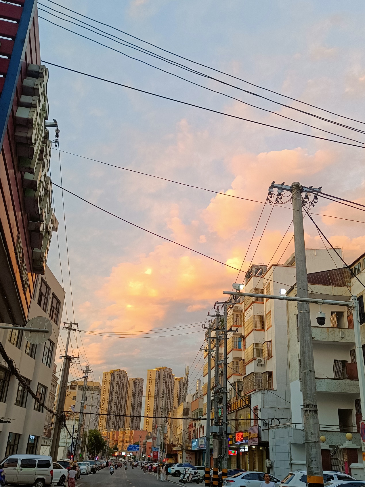 作品介绍:以日落晚霞和现实居民楼相互映照,突出烟火人间和芸芸众生的氛围感。十八线小县城的车水马龙和居民楼群,是柴米油盐酱醋茶,是嬉笑怒骂烟火气。金灿灿的天空画布歌颂着琐碎生活中的点点欢喜。