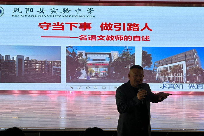 在凤阳县实验中学的精心安排下,学生们首先聆听了一场主题报告——“守当下事,做引路人”,中学高级教师王占发分享了他在教育一线29年的工作经验和心得体会,通过讲述自身经历和教学比赛的经验,向学生们强调了教学目标、教学设计和教学方法的重要性,鼓励学生们不断调整教学策略,以适应时代的发展。