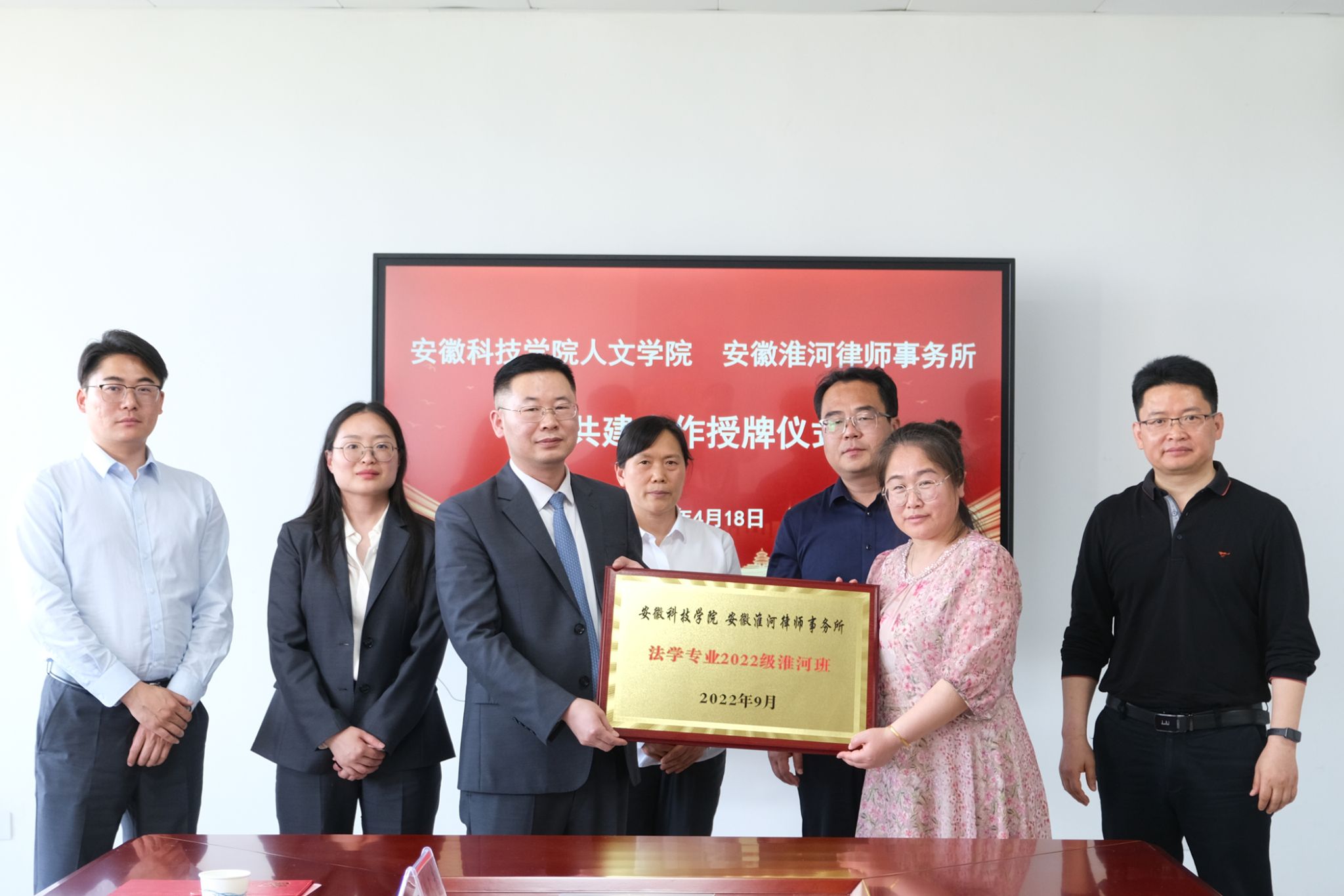 4月18日下午,人文学院与安徽淮河律师事务所,在人文学院313会议室,举行共建合作授牌仪式。安徽淮河律师事务所主任尹现波,党支部书记李加文,合伙人张小曼、叶磊,人文学院党委书记、院长李晓东,副院长牛永辉,党委副书记李沙娜,党政办副主任方明旺出席。仪式由牛永辉主持。