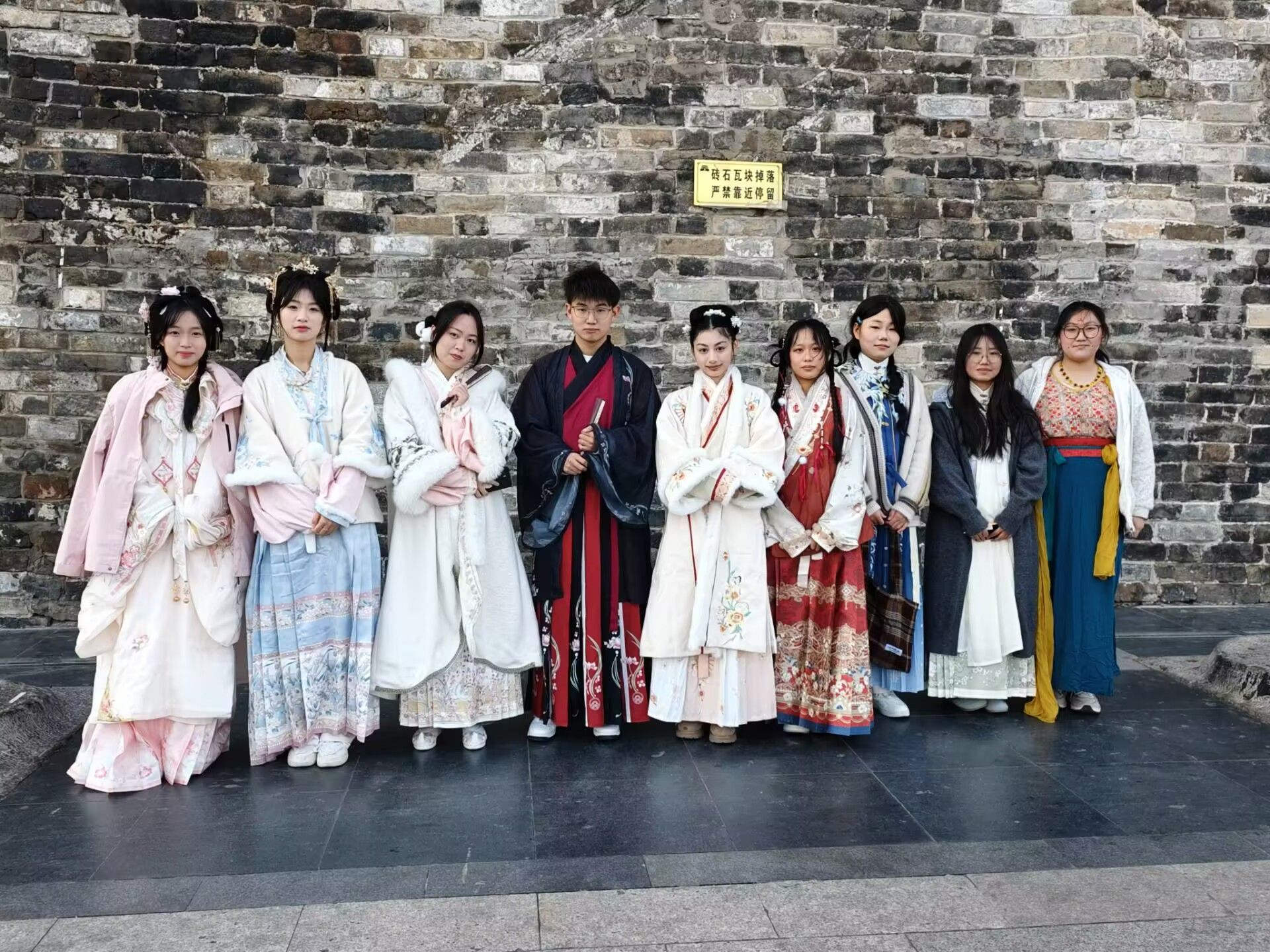 碧空如洗,惠风和畅。安科学子身着汉服,步行至鼓楼城墙下。女式服饰齐胸襦裙如彩云追月,轻盈灵动;曲裾深衣则端庄典雅,尽显闺秀风范;男式服饰直裰潇洒飘逸,颇有魏晋风骨。在展示汉服风采的基础上,同学们还向现场观众介绍了所穿服饰的文化内涵与所属朝代的礼仪,让那些沉睡在历史长河中的中华礼仪重焕生机,让中国传统服饰文化的优秀因子鲜活起来。