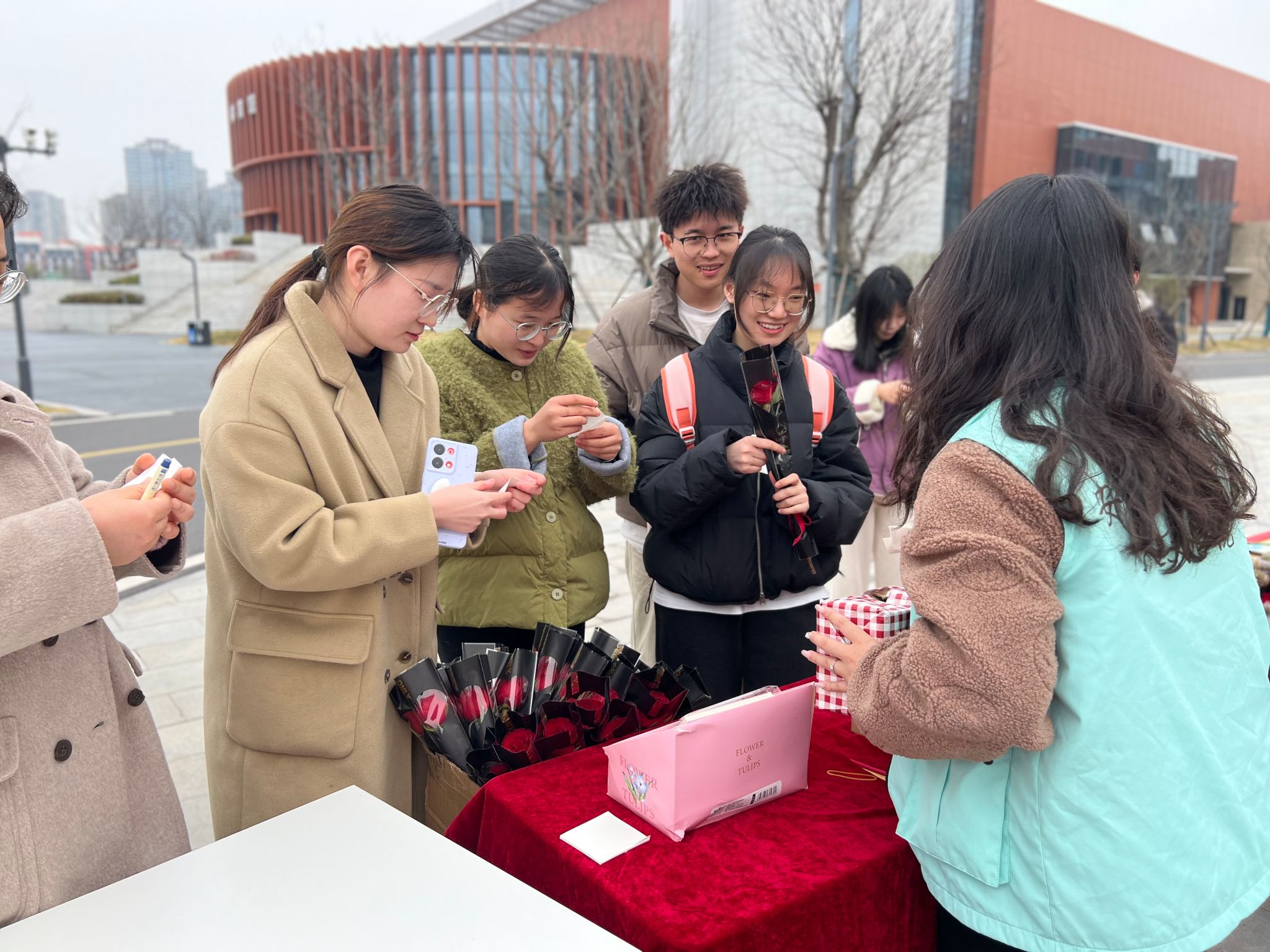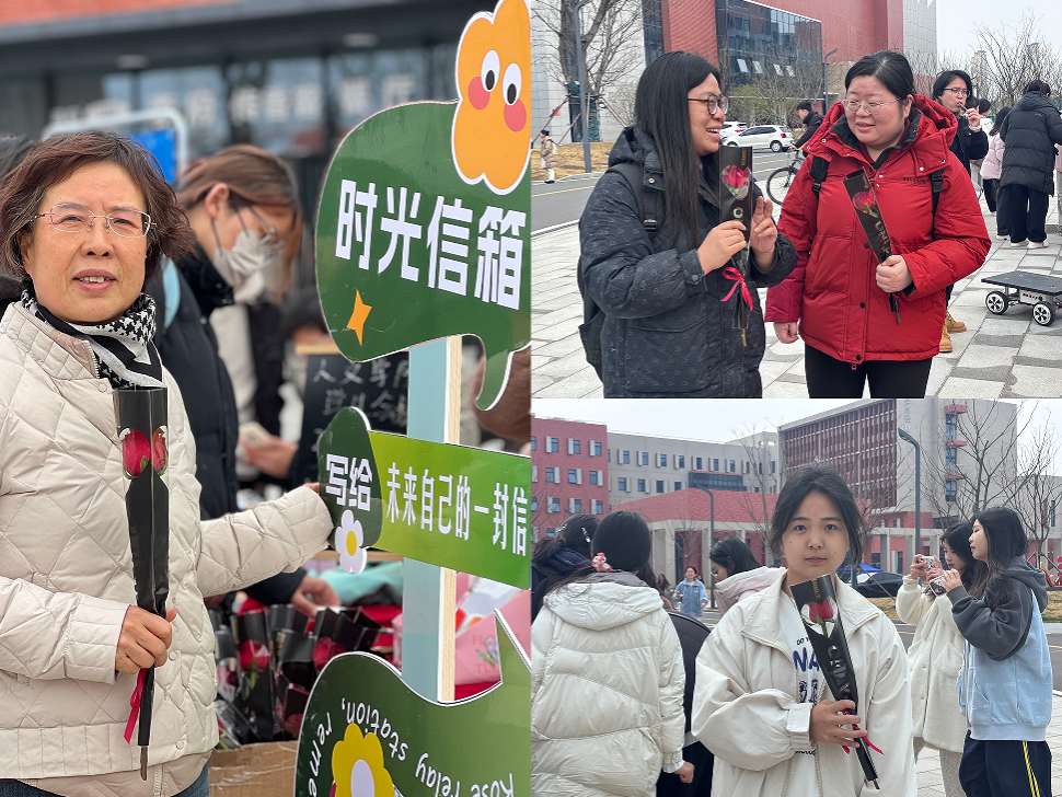 开岁发春兮,百卉含英。“情绪交换商店”“玫瑰花赠送”等活动,吸引众多女生流连驻足、踊跃参加。现场工作人员手持鲜花,献给敬爱的女性老师,送给辛勤的食堂阿姨,送给每一个来参与活动的“她”。每一朵鲜花都带着最真挚的祝愿,有了最终的归宿。