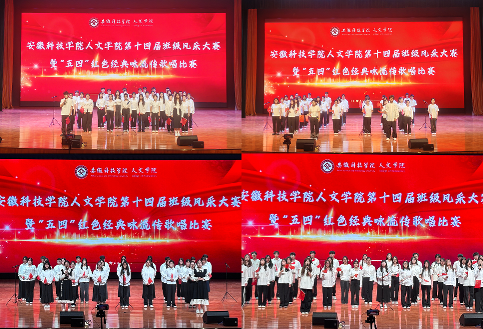 比赛现场气氛热烈,精彩纷呈。法学234班以铿锵有力的《没有共产党就没有新中国》拉开序幕,整齐的服装与挥舞的红旗相得益彰;法学231班演绎的《有我》融入情景朗诵,展现新时代青年的责任担当;汉语言文学241班通过隔空对话以及挥舞的红旗配合《如愿》的演唱,将革命先辈的牺牲与当代盛世巧妙串联;法学241班深情献唱《七子之歌》,同学们以整齐划一的旗语动作,生动演绎澳门回归祖国的赤子情怀;汉语言文学234班以极具视觉冲击力的舞台设计演绎《万疆》,诠释新时代青年的家国情怀。参赛班级各显神通,在演唱中创新融入多声部和声、舞蹈编排等艺术形式。经过激烈角逐和评委认真评判,汉语言234班和法学241班荣获一等奖,法学233班等5个班级荣获二等奖,汉语言243班等6个班级荣获三等奖。