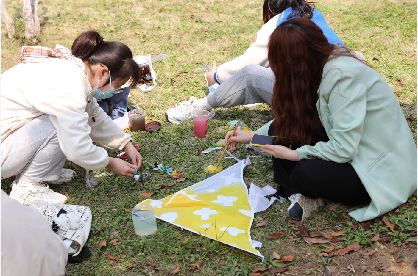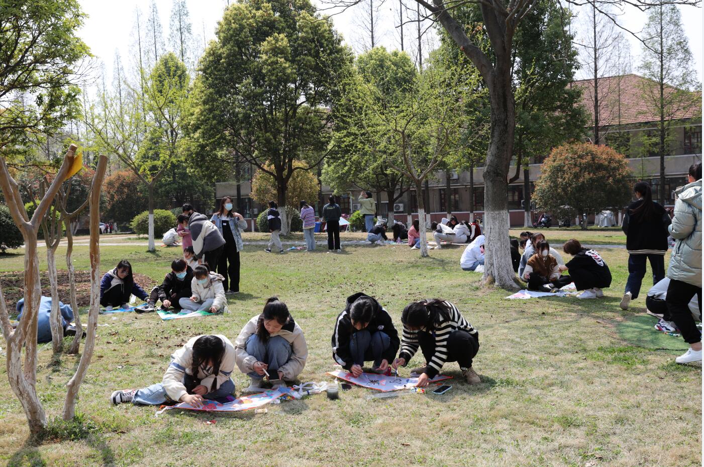 本次活动分为风筝设计制作和风筝放飞比赛两个环节。上午,来自凤阳校区各学院约200余名学生来到活动现场参加风筝设计制作,利用现场提供的白底风筝与各色涂料,各显神通,使自己心目中的春日盛景跃然纸上。下午,放风筝比赛在东区操场如期进行,几十组参赛学生牵引着风筝乘着春风展开了激烈竞逐,形式各异、风采不一的风筝为春日安科增添了一道绵延浮动的亮色。