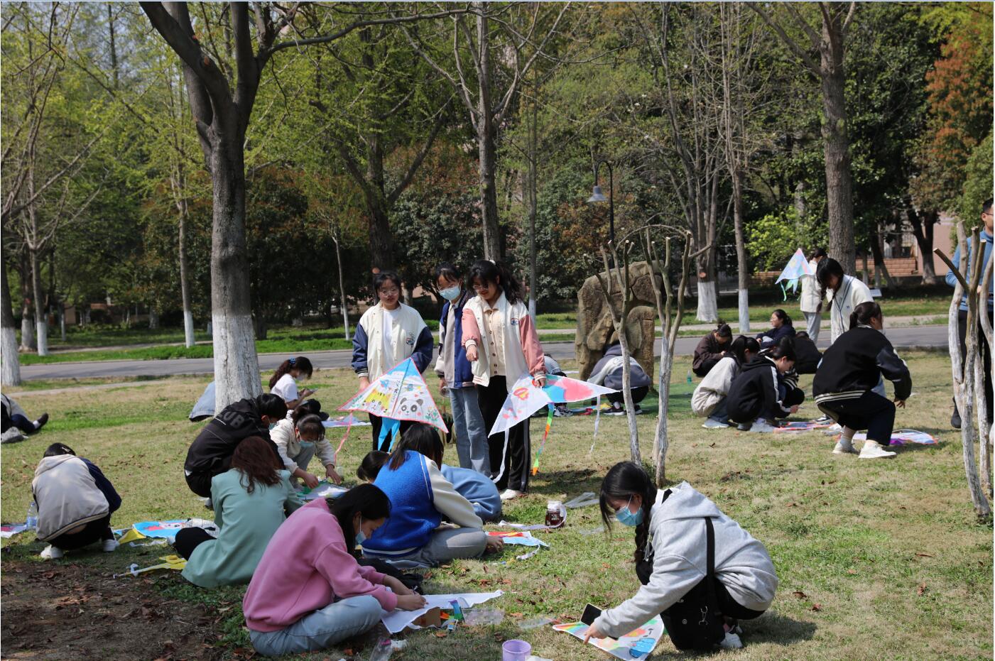 杨柳春风三月三,画桥芳草碧纤纤。4月3日,恰逢农历三月初三,早春时节,正是踏青的好时候。在坚决落实好疫情防控工作的同时,为丰富学生在校生活,人文学院开展了“风筝寄相思”的主题活动。