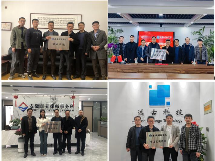 李晓东一行先后深入安徽知秋律师事务所、安徽国恒律师事务所、安徽卓昇律师事务所、上海兰迪(合肥)律师事务所、安徽闻海律师事务所和滁州云琅商贸有限公司、安徽远古科技有限公司、合肥品是复商贸有限公司、合肥侬家人文化传媒有限公司等9家用人单位走访交流,商谈推进校企合作和人才联合培养等事宜,拓展毕业生就业岗位近80个,并在相关律师事务所和企业举行建立实习实训基地和就业基地签约暨授牌仪式。