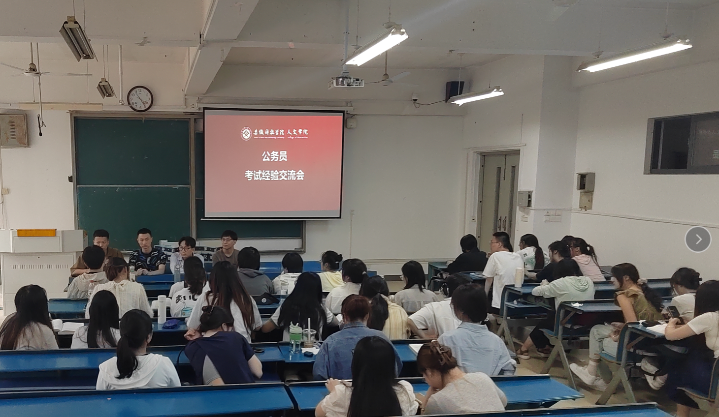 为帮助在校学生深入了解公务员考试政策及备考策略等,提高学生就业能力,助力毕业生高质量就业,5月21日,人文学院在新知楼A106教室举办公务员考试经验交流会,邀请人文学院2020级参加公务员考试的毕业生代表,为学弟学妹们分享交流公务员考试经验,法学2021级全体同学参加。