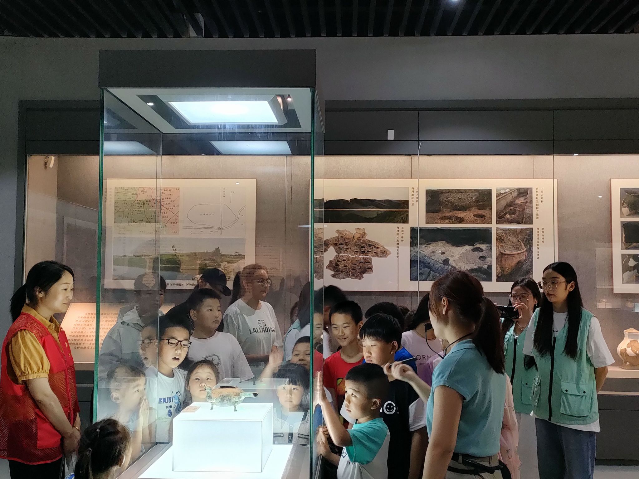 在活动现场,党员同学们按照既定计划,向在博物馆参观的小朋友们介绍凤阳相关历史文化知识。每一件展品都是历史的见证,文化的瑰宝。孩子们不仅仅是观察者,更是参与者,与凤阳历史亲密接触。党员同学们还给小朋友们分发精美的礼品,与孩子们合影留念,定格这一份相处的喜悦与美好记忆。