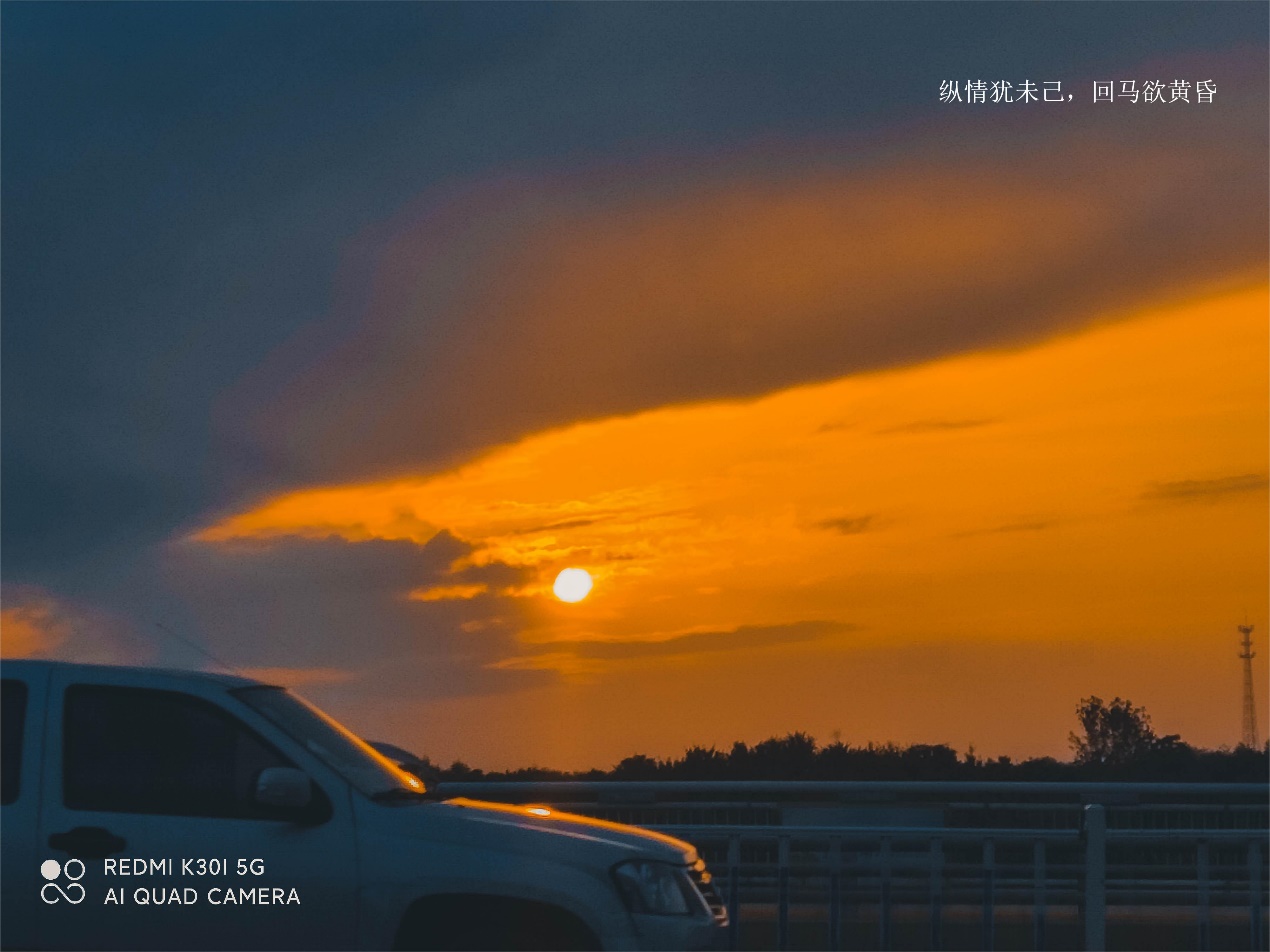 作品介绍:日落去过很多地方看过很多场日落温暖的、绚丽的、悲凉的、落寞的而最难忘是家乡的日落落日弥漫的橘天,温柔又浪漫橘红色的余晖里像炙热的阳跳进碧蓝的海收敛了刺眼的光芒留下橘子黄落在渐变的天际湖面摇曳着多彩的光影被归林云雀的鸣叫收回落日余晖顺着一绺长云铺洒天边趁着天还未晚她放肆的奔跑从西到东从东到西满是她温煦的身影在云黯淡的天空有一点霞光闪耀着那是她跳动的心脏炙热的念想只为远方的故乡我与落日相望有情翩翩请离开的慢一点,再慢一点晚归的人儿才好找着家的方向。