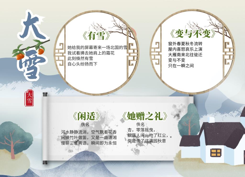 此次活动的开展,不仅丰富了同学们的精神文化生活,并且让同学们了解了“大雪”节气的民间习俗,激发了广大青年学生对传统文化的热爱之情。陶冶情操的同时展露人文精神,清冷是北风,晶莹是雪花。(特约通讯员:焦雪松 审核:李沙娜)