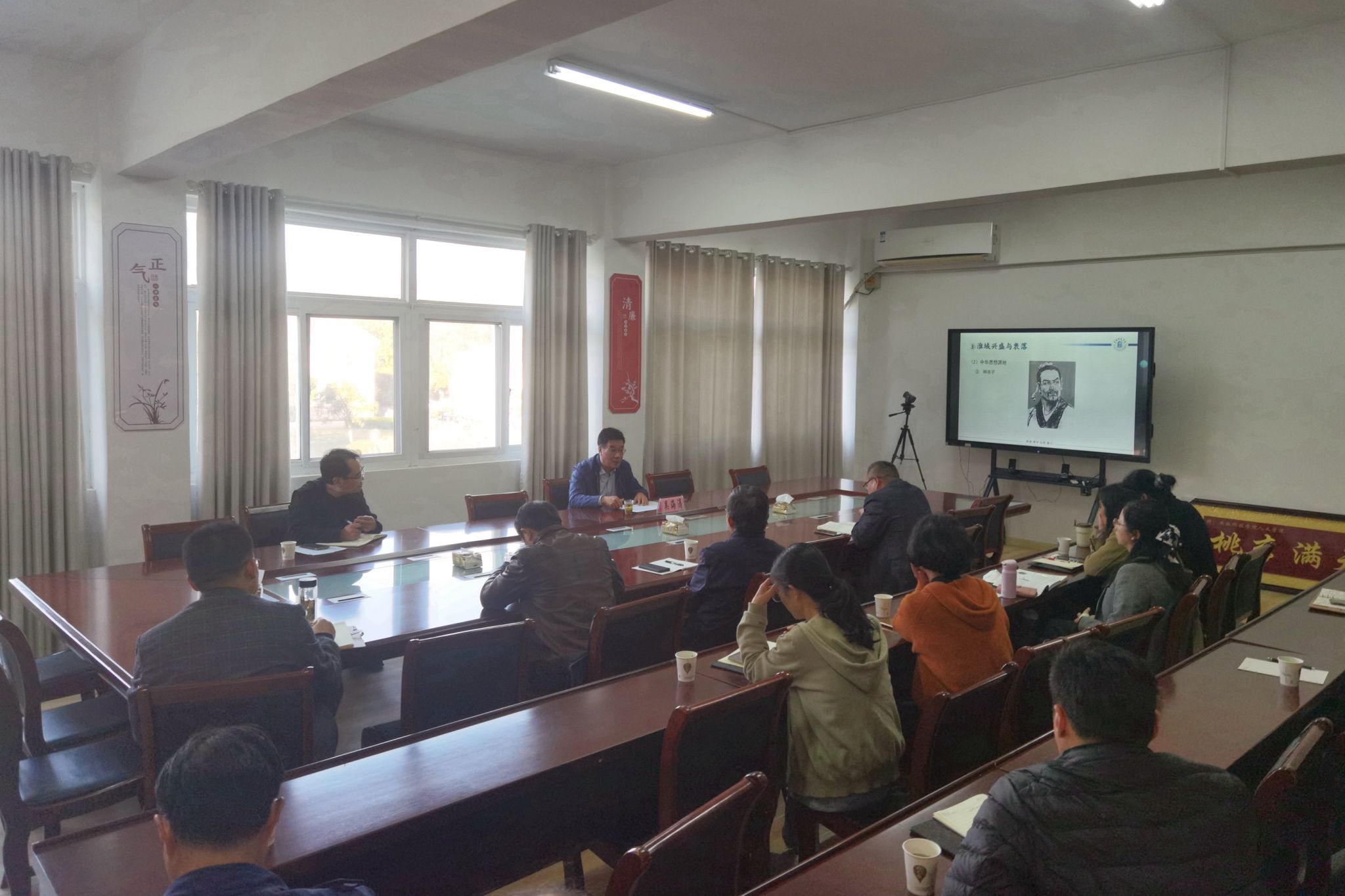 11月6日下午,阜阳师范大学吴海涛教授应邀到人文学院作学术报告,并就国家社科基金项目、安徽省哲学社科规划项目申报进行专题辅导。学院副高以上职称教师、博士学位教师和明文化研究会教师参加报告会。报告会由人文学院党委副书记、院长李晓东主持。