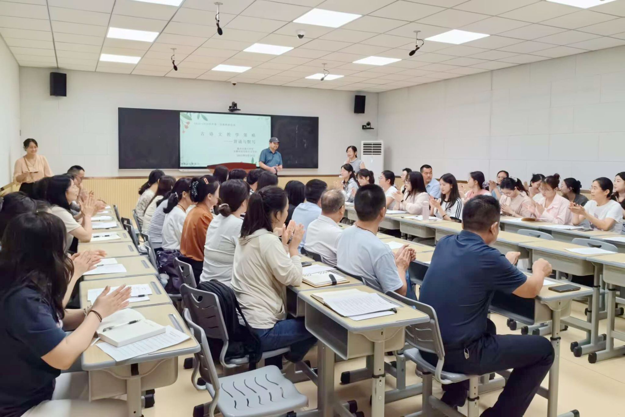 研讨会围绕古诗文的背诵与默写这一教学核心问题,从试题形式发展、现状及原因分析、方法和策略分享、集体研讨和交流、活动汇报与总结五项内容展开。六中周俊老师梳理了中学古诗文背诵默写类试题的形式演变与发展趋势,明确近年考查重点的变化方向。针对当前学生存在的“背得浅、默得弱、用得少”现状进行深入剖析,指出当前中学生学习过程中和教师教学方法出现的问题。随后,多位教师结合教学实例,分享了“每日晨读打卡”“分层背诵任务单”“古诗文默写闯关赛”等提升教学实效的成功经验。