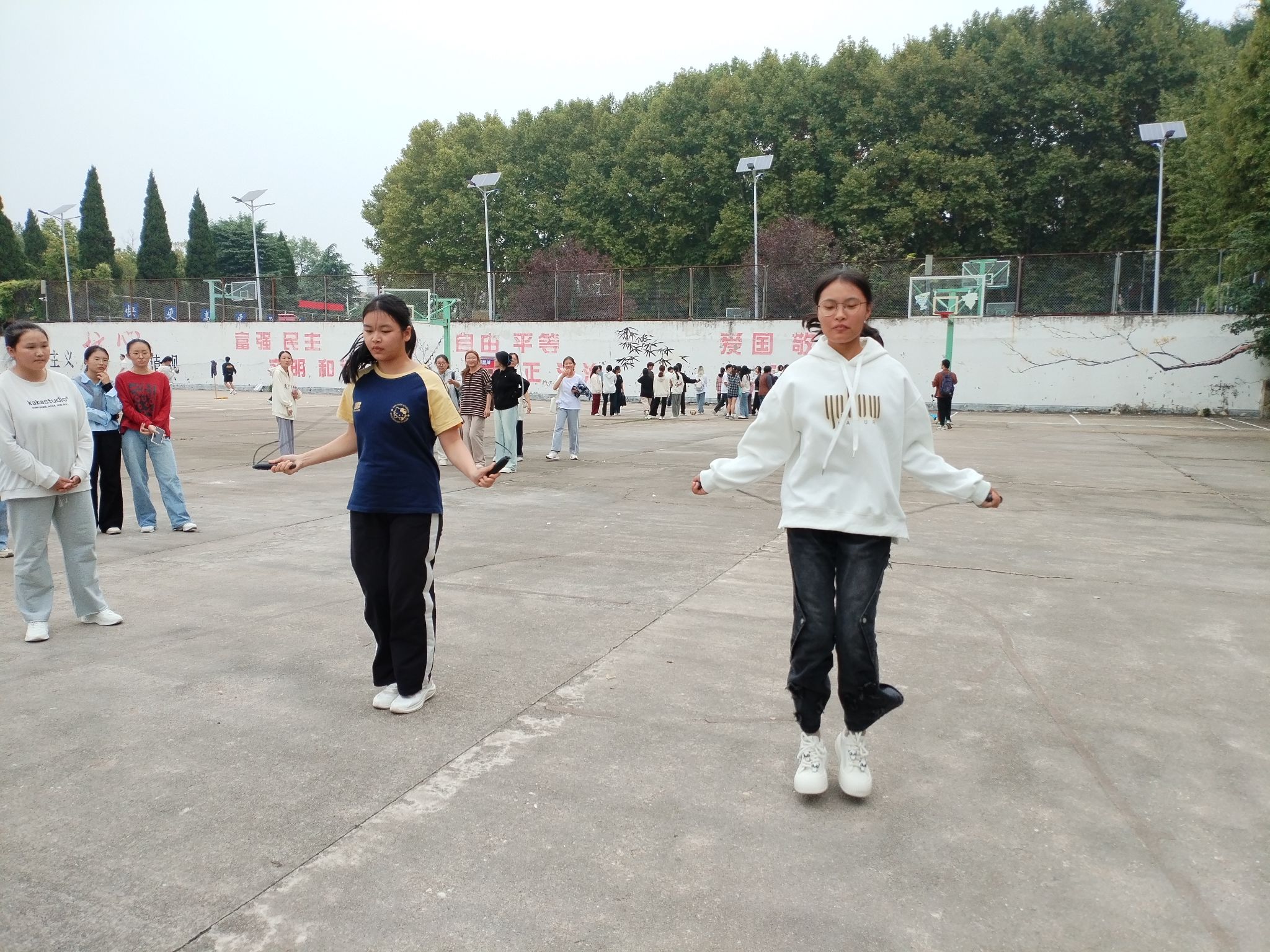本次运动会将娱乐与竞技相结合,设置了众多妙趣横生的项目:男子三分线定点投篮,男子足球90秒颠球,男子引体向上,女子一分钟跳绳,女子一分钟仰卧起坐,女子90秒排球对墙垫球。运动场上的同学们欢呼雀跃。赛前,运动员摩拳擦掌,跃跃欲试;赛中,运动健儿们在赛场上挥汗如雨,奋勇争先,激情洋溢。同学们的呐喊助威更是将趣味与运动的气氛推向高潮。篮球划过的轨迹,诠释着弧线的优美;足球跳跃在脚尖,是节奏与旋律的绽放;跳绳的挥动,牵引着同学们心连心……此刻,整个操场沉浸在了欢乐与激情之中!