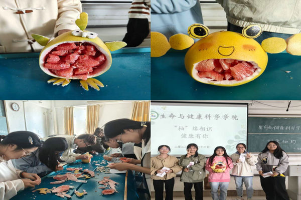 10月22日上午,学院心理委员联合会组织23级新生于新知楼B304教室举行健康“柚”约剥柚子比赛。赛前积极宣传,同学们踊跃报名组建团队,利用各种工具雕刻出创意图案。中药学(卓越班)231“海底小纵队”获得第一名;药物制剂231“柚,柚,柚队”获得第二名;生物科学(对口)232“碱基互补配队”获得第三名。比赛过程中,同学们团结合作、相互鼓励,不仅提高了动手创作能力,也增进了沟通交流,建立深厚友谊。