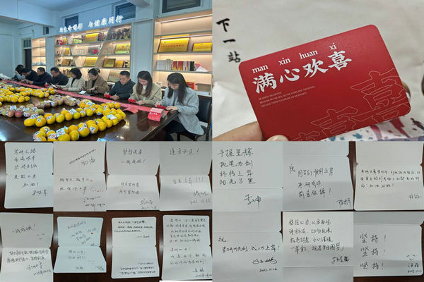 学院党政领导、班级辅导员及2023级新生等手写“加油卡”并录制视频送祝福。“长风破浪会有时,直挂云帆济沧海”“看似波澜不惊的日复一日,一定会在某一天让你看到努力的意义!冲!冲!冲!”“考研加油”……,一句句鼓励的话语,成为冬日考研倒计时里最温暖的留恋。研途漫漫,道阻且长。希望通过“加油卡”为考研学子传递祝福与期待,勇战蟾宫折桂,踔厉一举夺魁。