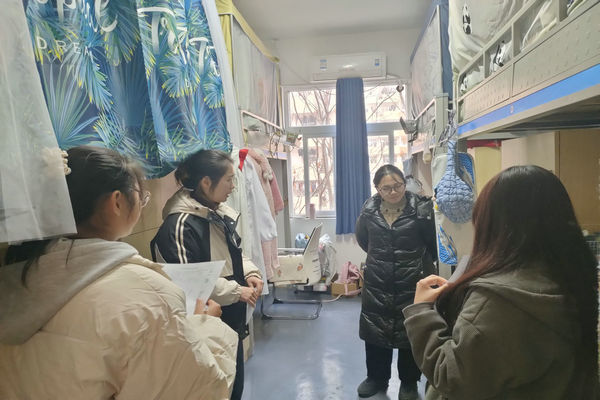 为加强宿舍安全管理,保障学生宿舍安全,12月27日下午,生命与健康科学学院副科级辅导员孙玉楼带领学生会工作人员对全院学生宿舍展开安全卫生大检查。 检查过程中,工作人员仔细查看宿舍卫生情况,排查可能存在的安全隐患,重点查看是否存在使用违规电器、插排上床、饲养小动物等违反宿舍管理规定的不良行为。走访中,孙玉楼与同学们深入交谈,了解其生活学习状况,及时了解学生思想动态,鼓励同学们共同营造和谐宿舍氛围,希望同学们能够友好相处,共同营造良好的宿舍环境,争创文明宿舍。
