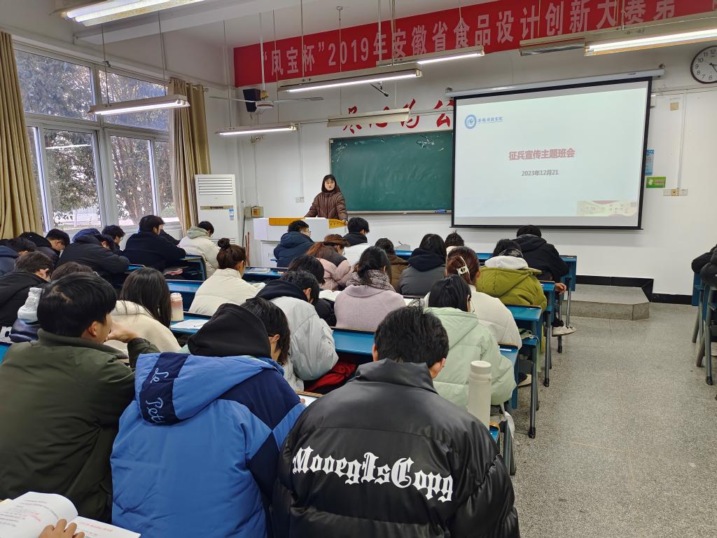 强化宣传,营造氛围。学院征兵工作小组召开了2024届毕业生征兵工作推进会,制作了应征入伍政策详解ppt,供各位毕业班辅导员宣传动员使用。同时学院征兵工作联系人重点从“政策优化、优惠政策、军旅生活、征兵入伍”等四个方面为广大毕业生介绍了2024年大学生应征入伍相关政策,并邀请优秀退役复学大学生分享参军入伍成长经历,使广大毕业生对军旅生活有了较为具体的了解,互动交流解疑答惑。同时学院还通过专兼职辅导员会议、学生干部会议、主题班会等形式,借助QQ群及易班等平台,进一步加强宣传,进一步提升适龄男性青年大学生参军报国的热情。