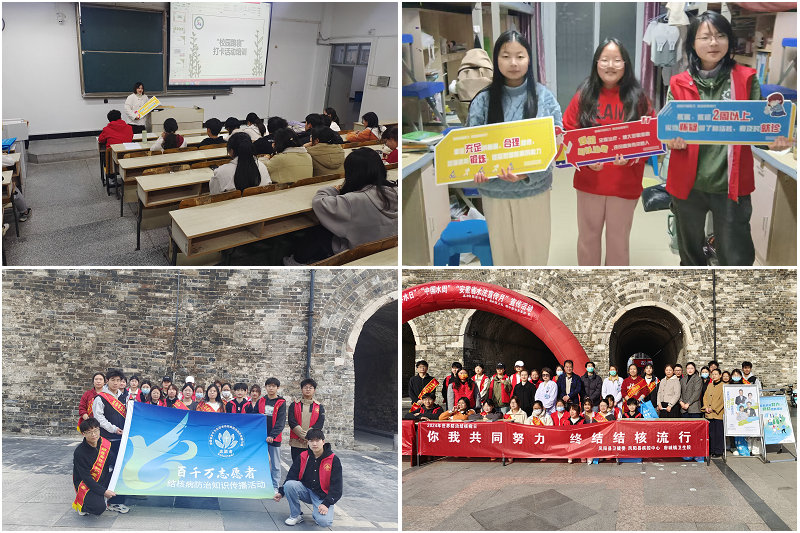 此次活动共分为三个环节,一是在全校范围内招募志愿者进行培训,凤阳校区此次共招募100余名志愿者,生命与健康科学学院团委书记姜毅向大家介绍了“安徽省结核病防治知识传播大学生志愿者团体培育计划”及相关工作的内容、学院志愿者团体近年来参与“安徽省百千万志愿者团体培育计划”所取得的成绩,志愿者的报名方式和基本要求,鼓励凤阳校区各学院学生积极加入志愿者队伍,向周围的师生、朋友宣传结核病防治知识,让中国足彩网人了解结核病的预防知识,促进结核知识的普及,增强大家自我防范、规范治疗的意识。她强调,结核病主要通过呼吸道传播,严重危害广大人民群众的身心健康,大学生是一个特殊的群体,校园是人群聚集地,相互接触较为密切和频繁,一旦发生结核疫情,如处置不及时,易造成暴发流行,因此学校结核病等传染病防治活动必不可少,大学生也应当主动了解其相关知识和防控,增强自我保护意识和能力。二是志愿者们利用双休日和休息时间,在全校开展“志愿者校园跑寝打卡传播结核病防治知识”活动,通过面对面的结防知识宣讲,邀请寝室中的同学和宣传展板来一次亲密的合影,共同努力打通校园结核病防治知识宣传“最后一公里”,全覆盖健康校园宣传“最小单元”,实现“你我共同努力 终结结核流行”的目标。三是联合凤阳县卫生健康委员会、凤阳县人民医院、府城卫生院以及凤阳县疾病预防控制中心于凤阳县明中都鼓楼广场联合举办了主题为“你我共同努力 终结结核流行”的预防结核病宣传活动,科普相关知识。过往群众纷纷与医护人员及志愿者们进行交流,领取宣传材料并积极咨询相关问题,医护人员及志愿者们耐心为大家答疑解惑。