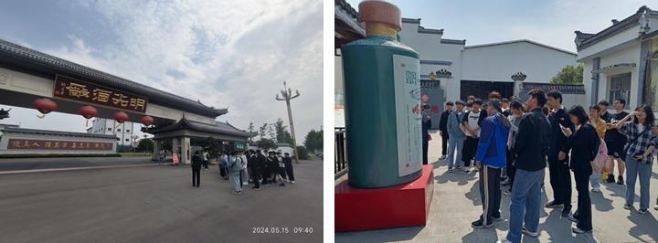 第二站是安徽明光酒业有限公司,这是一家中国白酒百强企业,年产白酒约3万吨,拥有数百名酿酒技师和强大的科技人才队伍。在这里,同学们了解了酒的生产、储藏以及背后的科学问题和知识,并与公司相关岗位工作人员就有关问题进行了研讨,使师生对白酒生产工艺、微生物发酵等方面有了较为深入的了解。