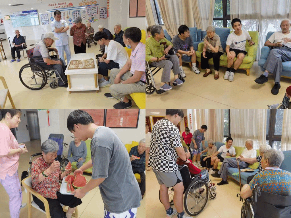 活动中,朝气蓬勃的团队成员们为沉寂许久的敬老院带来了欢声笑语,正值青春年华的团队成员虽与敬老院的老人们有着年龄上的差距、思想上的代沟,但依旧交谈甚欢。团队成员们热情地向老人们分享自己所遇到的趣事,有些老人耳朵听不清楚,团队成员便耐心的一遍遍重复,只为把快乐传递到老人们的心中。老人们也向团队成员分享自己的经历和人生经验,使团队成员们收获颇多。随后,团队成员们相互合作,分工明确,帮助老人修剪指甲、整理衣物、打扫房间以及陪老人下象棋等,只为让其感受到社会的关怀,老人们的脸上再次洋溢出笑容。最后,成员们为老人们分发团队带来的西瓜,为炎热的夏天带来一份清凉,也为老人们的心里带去一抹甜。在欢乐的氛围下,活动迎来尾声,成员们站在敬老院门口缓缓招手,表示以后会多来看望老人,为老人解闷。