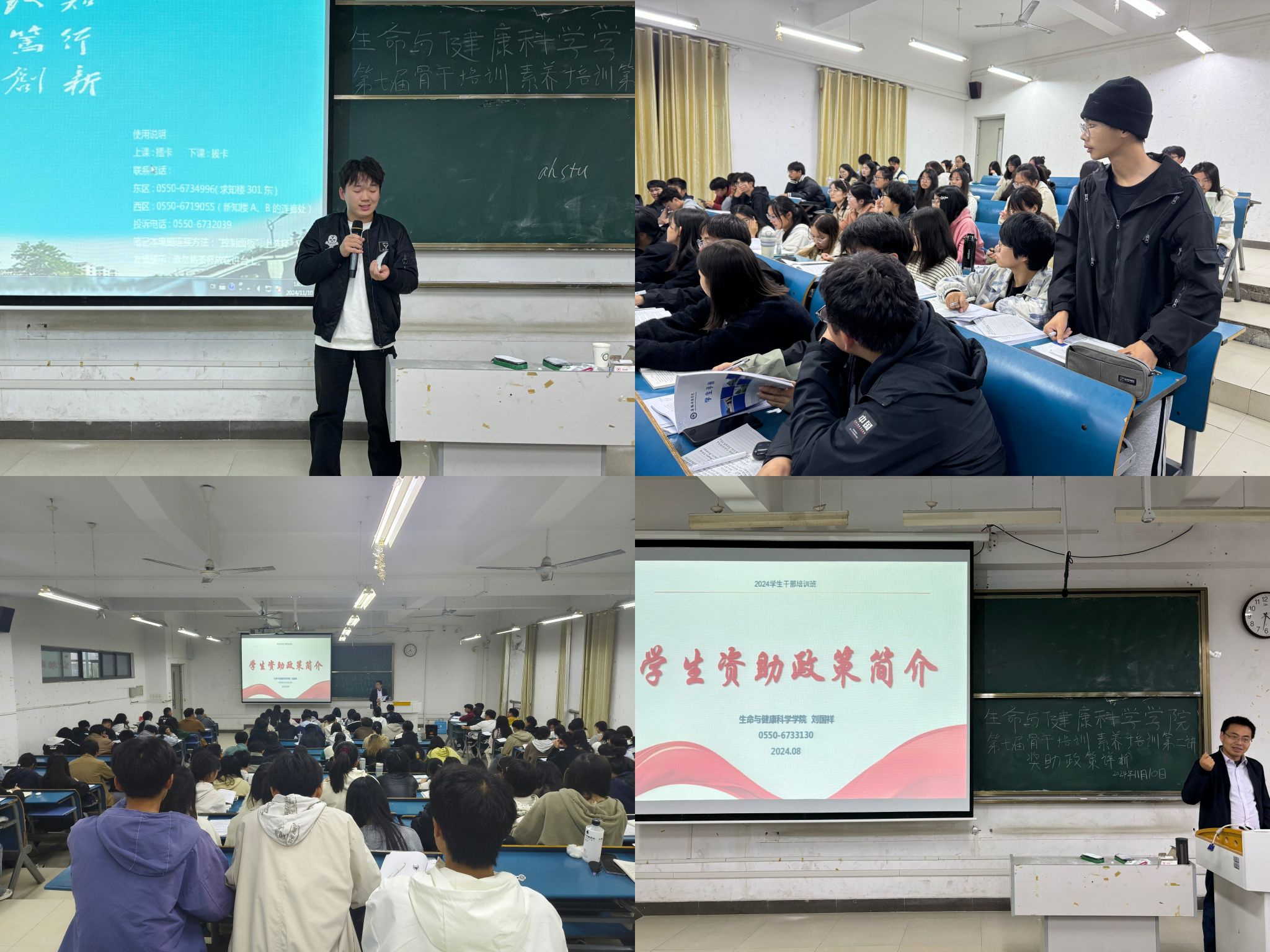 为全面贯彻落实党和国家各项资助政策,切实做好新学期学生资助育人工作,提升学校学生资助工作队伍专业素养,11月10日下午,生命与健康科学学院在新知楼B304教室举办了一场以“学生资助政策简介”为主题的学生骨干专题培训。由学院正科级辅导员刘国祥担任主讲人,24级各班级学生干部,学生会全体工作人员参加培训。