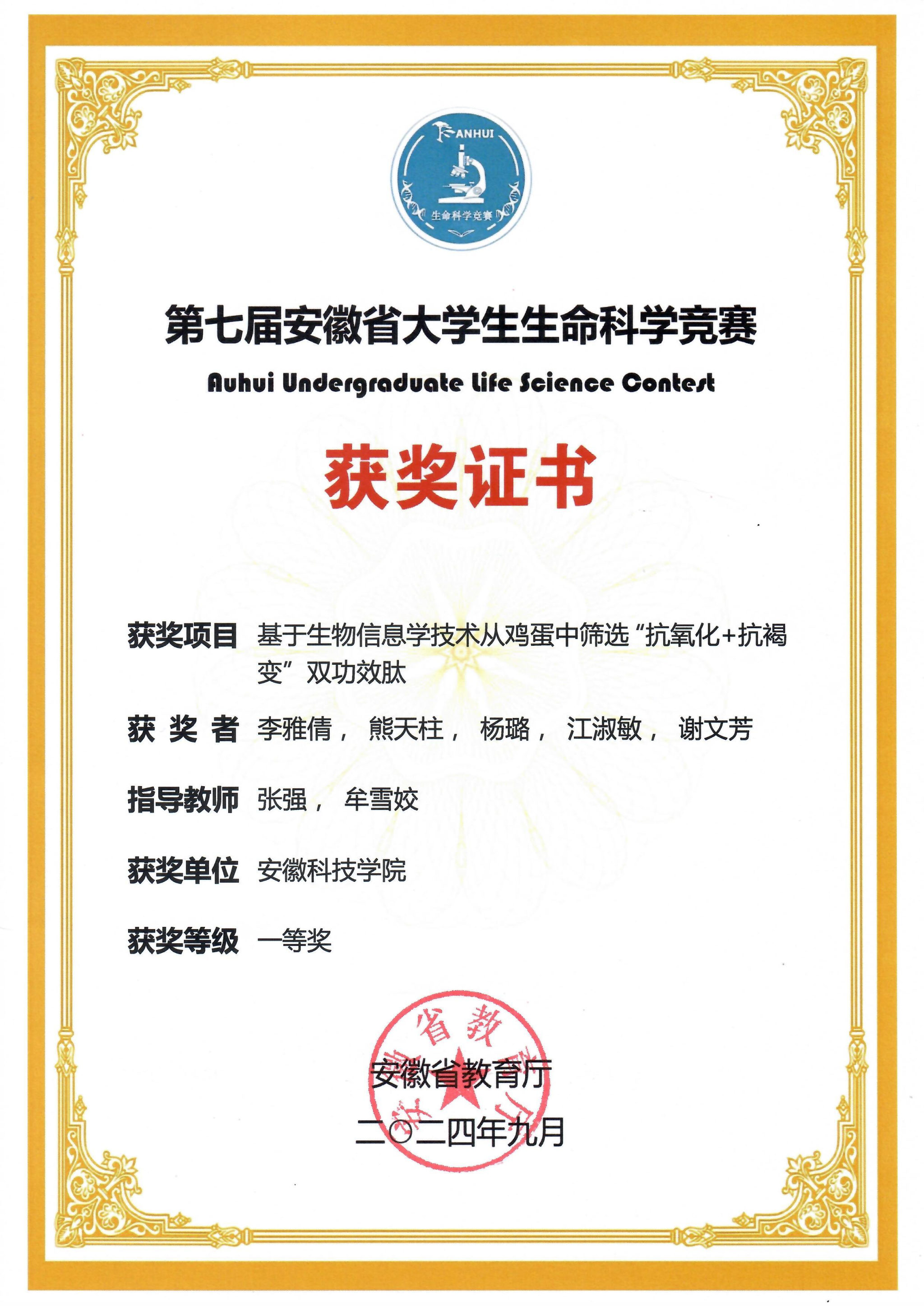 2024年,学院张强、孙玉军等老师指导的全国大学生生命科学竞赛获国家三等奖1项,省级一等奖1项,省级三等奖5项;刘华彬、汪雁等老师指导的安徽省大学生生物标本制作大赛获省一等奖1项,二等奖3项,三等奖2项。学院大学生以第一作者公开发表论文15篇。学院校级团队入住众创空间3项;学院按要求完成国家级、省级以及校级42项大学生创新创业训练计划项目立项;对大学生创新创业训练计划项目指导有力,结题验收和中期检查按照学校主管部门要求严格执行,大创项目结题率为77.6%。