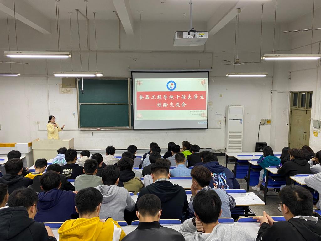 食品工程学院“十佳大学生”经验交流会的举办意在全面推进社会主义荣辱观教育和进一步加强学院学风建设,深入学习、宣传食品工程学院优秀大学生的先进事迹,使得广大同学能够从身边人、身边事感受到先进典型的模范带头作用,更加明确自己的学习目标和努力方向。(特约通讯员:时韩荣 审核:付光玺)