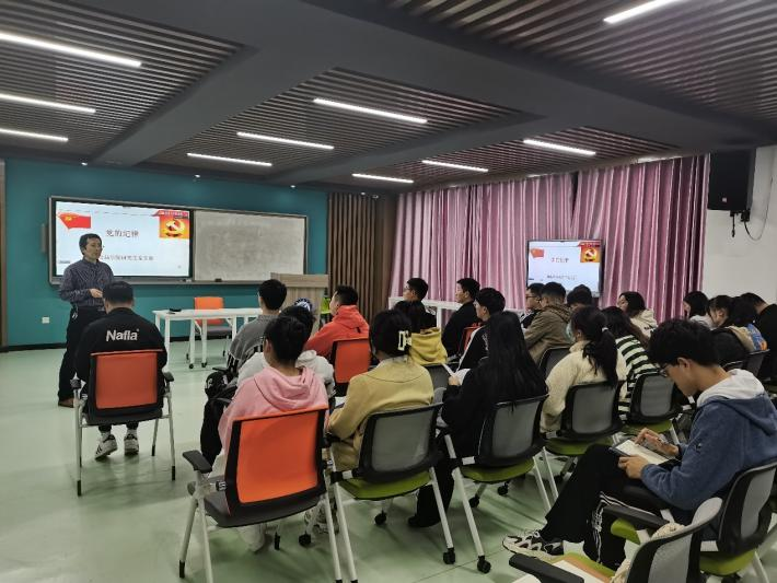 为严格落实三会一课制度,增强党员的纪律意识,11月3日晚,食品工程学院研究生党支部书记桑宏庆在求知楼B309教室为支部所属全体党员和入党积极分子讲授党课,活动由支部组织委员王孙焰主持。