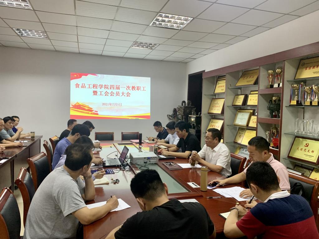 7月5日下午,食品工程学院在学院会议室召开四届一次教职工暨工会会员大会。会议分两阶段进行,第一阶段由学院党委书记付光玺主持,第二阶段由学院党委副书记王广良主持。学院全体教职工参加会议。