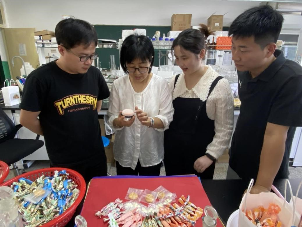 同时,杨老师还是一位认真负责的研究生导师。在研究生管理方面,杨老师把严厉和坚韧表现的淋漓尽致,在她的研究生眼中她是典型的“女汉子”,同学们评价她是“说起话来像妈妈,干起活来像汉子”,她自嘲自己是“打不死的小强”,为了提高工作效率和节省费用,她常常出差不在外住宿,甚至自己开车起大早出门晚上跑夜路归家,她带的研究生对此感触颇深。2020级研究生胡金朋深有感触地说:“我经常跟着导师深入到企业去做项目。有一次,从企业回来已经很晚了,杨老师说咱们按路上讨论的方案马上就试试,虽然大家都很疲惫,但看到导师都这么拼命,大家就二话没说直接跟着她到实验室又干了半宿……也正是杨老师的这种做法激励着我,在最艰难的时候顽强地坚持,才取得了今天丰硕的成果。”当胡金朋同学第一次收到sci收录通知的那一刻,他激动的第一时间向杨老师报喜,杨老师也为自己的弟子能有这样的进步和成就感到骄傲,她鼓励胡金朋说,一旦找到了规律,第二篇第三篇收录通知都会慢慢来的。刚入校不满一学期的2022级食品加工与安全专业研究生崔海鹏谈起杨老师,脸上流露出的全是敬佩和羡慕,他腼腆地说:“我是跨专业上研究生,入学半年来,杨老师先指导我补充专业基础知识,然后指导寻找专业问题,循序渐进,手把手教我做学问。找杨老师做导师,我选对了!在为人、做事、做学问等各个学方面我都深切地感受到了杨老师的人格魅力。”