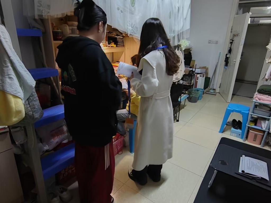 本次活动全面排查了安全隐患、学生外宿以及不文明现象,重点检查了是否存在使用大功率电器、管制刀具或其他违禁物品。针对发现的问题,食品工程学院权益维护部负责人汪海洋、桑晓雨提出了具体整改意见,他们指出,要高度重视宿舍的安全和卫生问题,并叮嘱同学们要多开窗通风,保持良好的宿舍卫生环境,遵守宿舍各项管理规定,注意用水用电等安全。