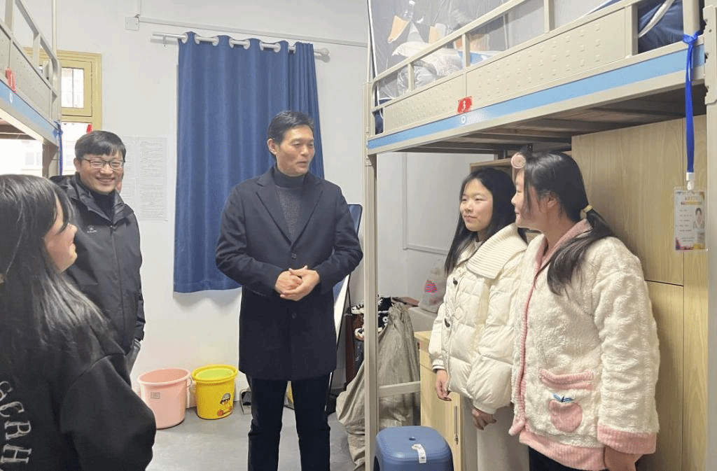 “寒假期间过的怎么样?”“父母身体可都好?”“课程复习的怎么样?”每到一间宿舍,付光玺都与返校同学们亲切交流,仔细询问同学们寒假在家的情况,欢迎同学们愉快返校。他指出,本学期又是一个新的开始,同学们要信心满怀,精神振奋,做好宿舍卫生和安全工作,以崭新的姿态迎接新学期。学院领导一行重点走访了东五女生宿舍楼,认真了解同学们入住改造更新后宿舍的感受和建议,进一步改善宿舍生活环境。付光玺强调,在学校党委的关心下,学校后勤部门寒假期间加班加点,在艰难的条件下高质量完成了宿舍改造工作,积极为同学们创造良好的学习生活环境,大家要更加努力学习,不辜负学校和家庭的期望。同学们脸上都洋溢着欢快的笑容,对改造一新的宿舍环境赞叹不已,向老师们介绍在学院赠送的相框里张贴宿舍文明公约等特色做法,纷纷表示非常感谢学校和学院的关心,自己一定会调整好状态,珍惜宝贵年华,认真复习,做好规划,以热情饱满的姿态迎接新学期的生活。